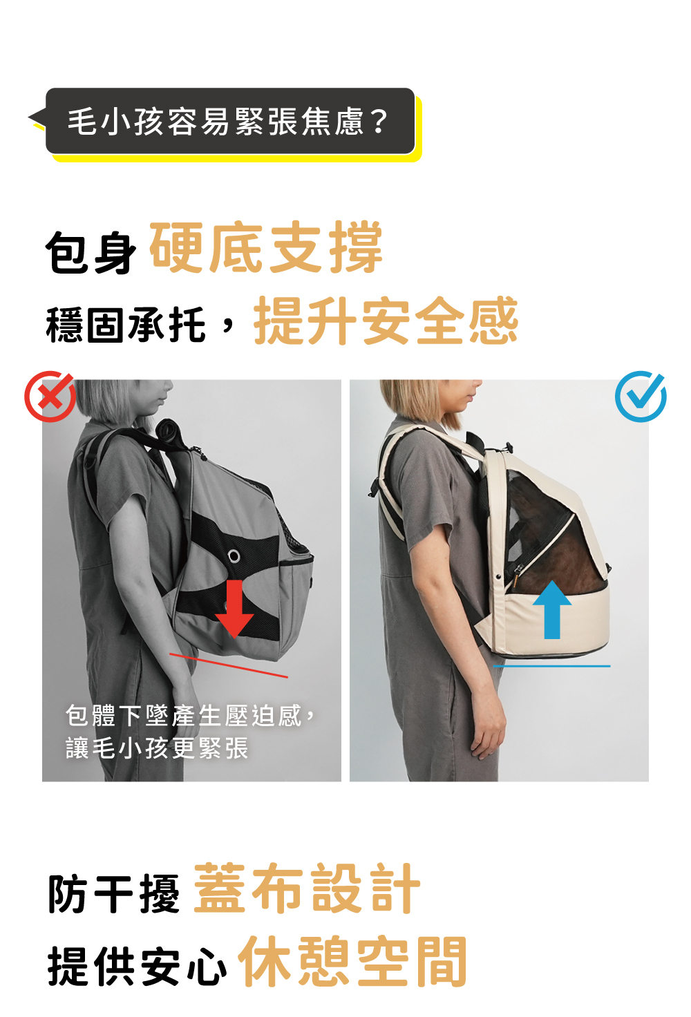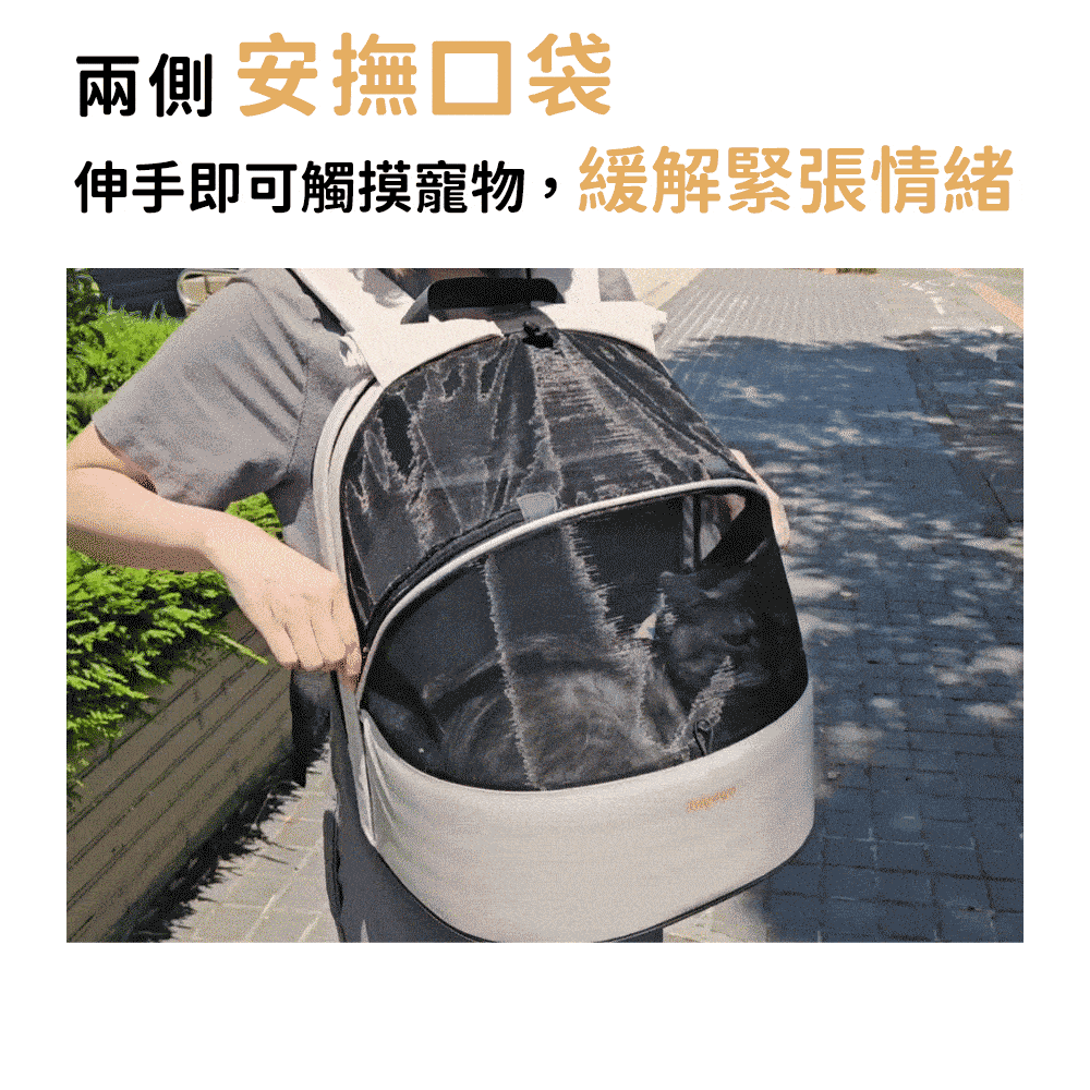 ◆兩側安撫口袋可觸摸毛孩緩解緊張