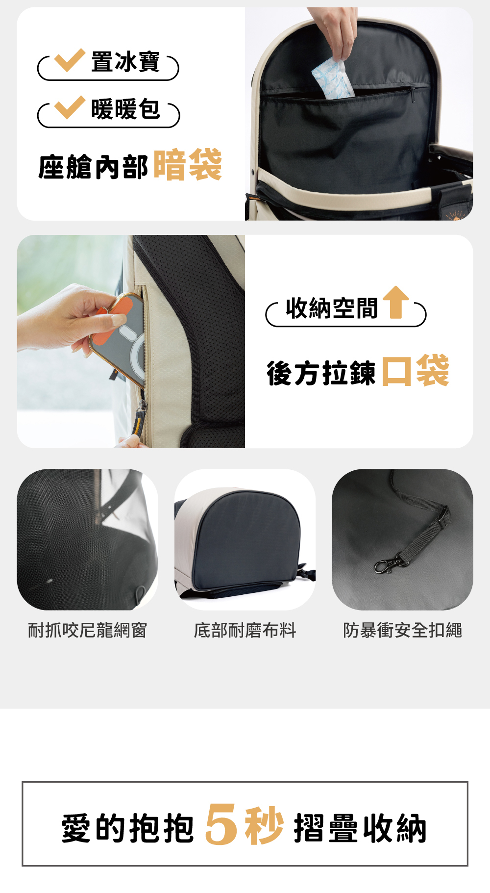 ◆座艙內部暗袋可放冰寶或暖暖包