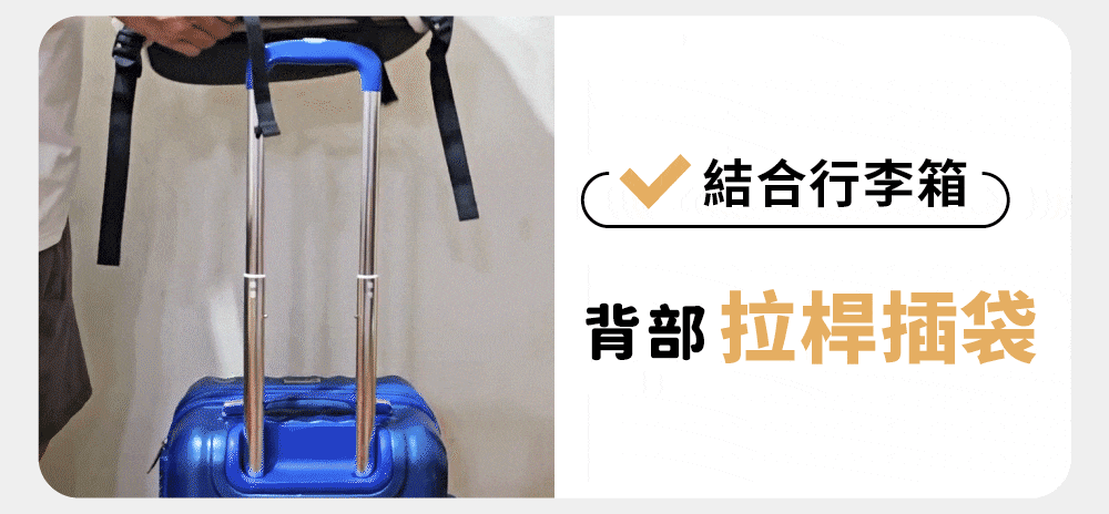 ◆背部拉桿插袋可結合行李箱