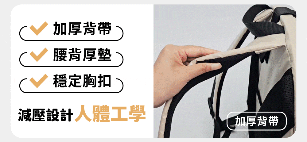 ◆加厚背帶+腰背厚墊+穩定胸扣,人體工學舒適減壓,可輕鬆長時間背負