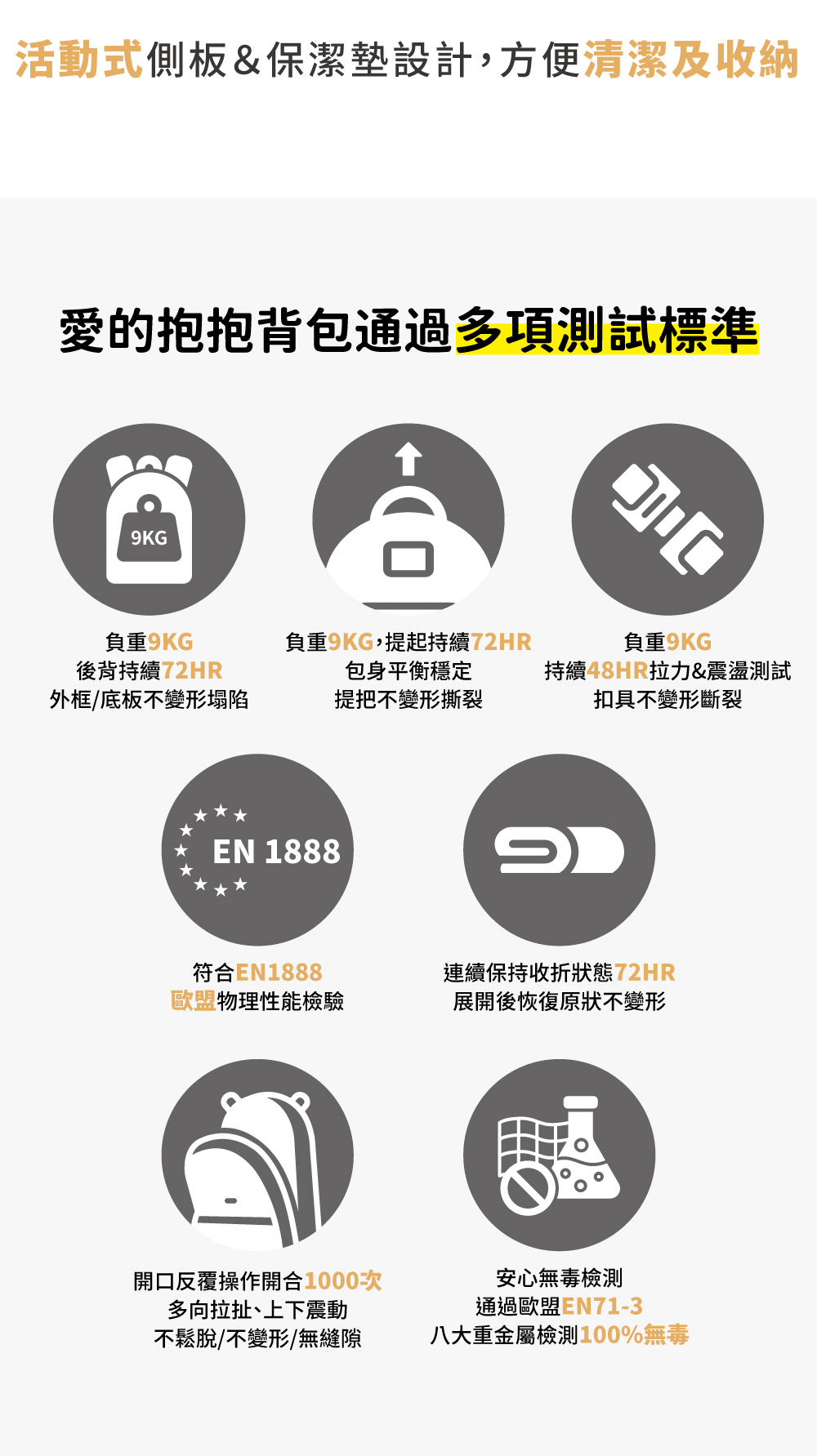 ◆活動式側板和保潔墊,包包可摺疊收納