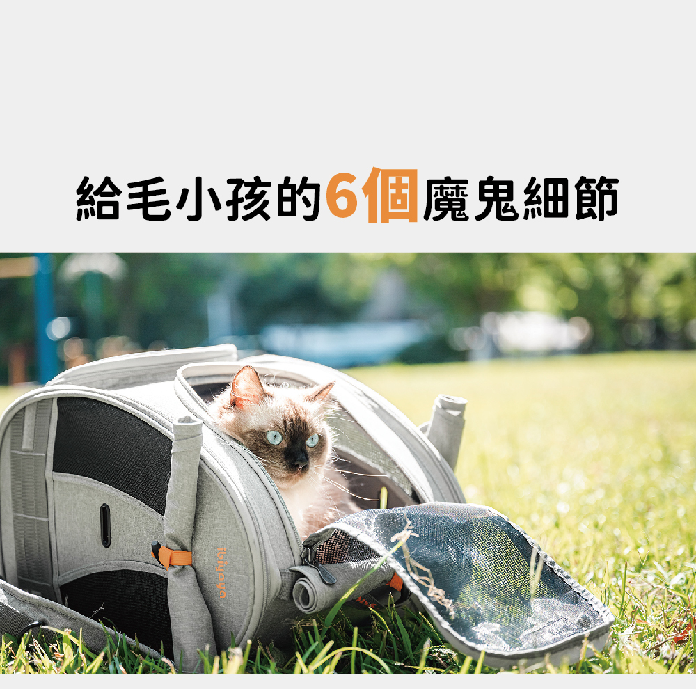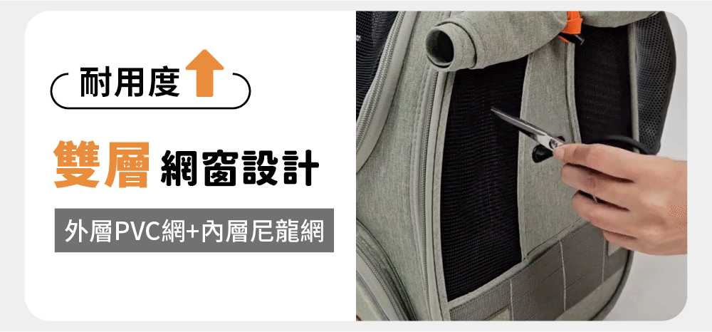 頂級貓背包採特殊雙層網窗設計,由高強化抗抓咬的PVC網和尼龍網組成,提供更好的可見度和互動性,網窗和蓋布都可以上捲收納。