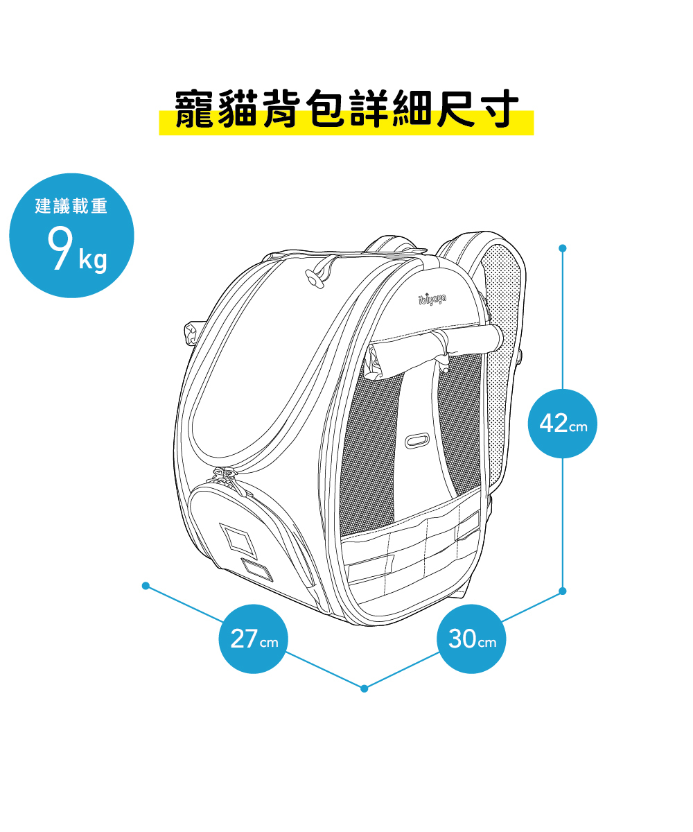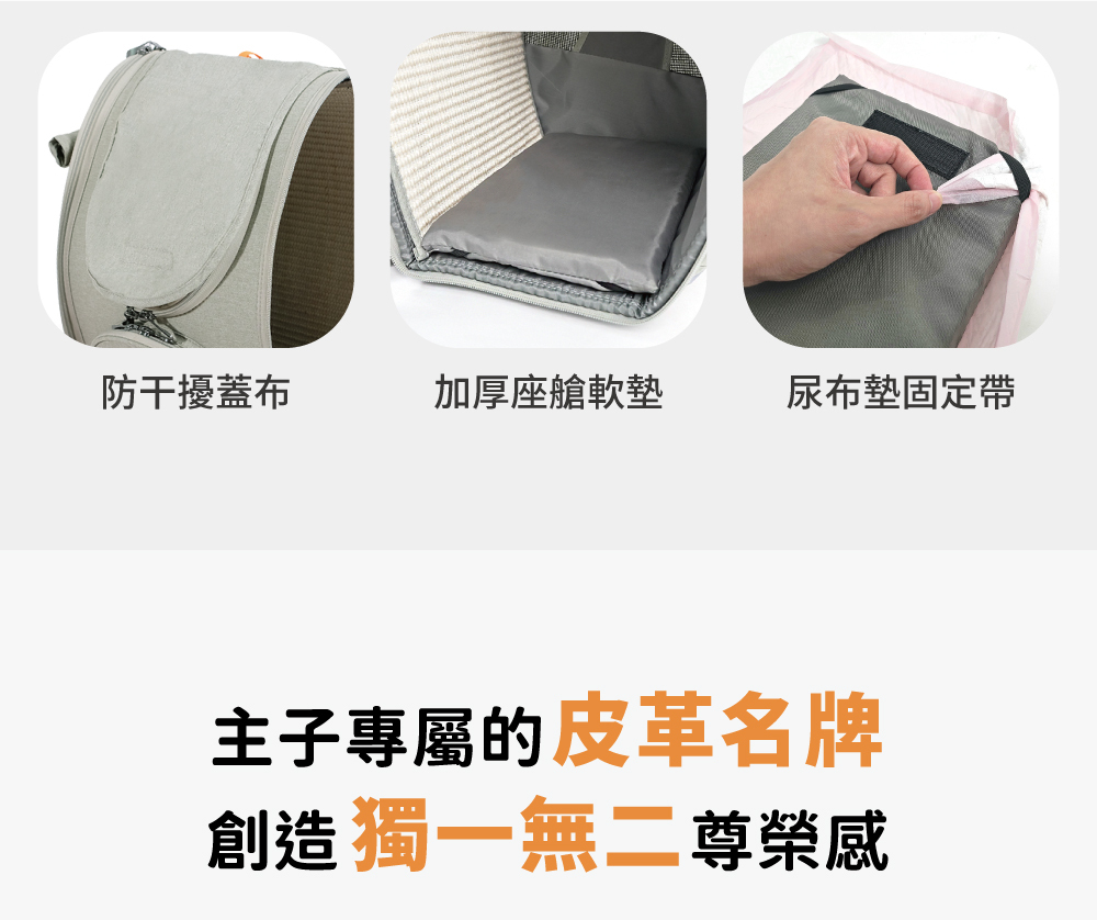 在穩固性方面,我們使用符合人體工學的加厚肩帶和胸扣固定雙肩,並以鋼圈支撐包身兩側,讓爸媽及貓主子都能舒適地出遊。