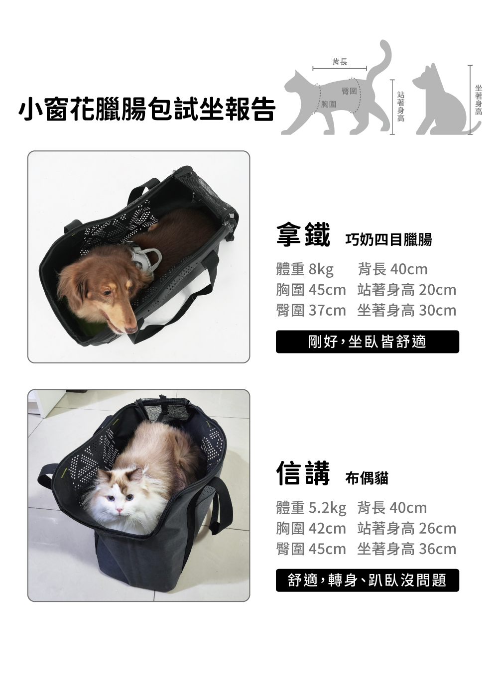 小窗花加長款是專為臘腸狗及其他長身型寵物量身制定尺寸的!包身加長設計保護寵物脊椎不彎曲