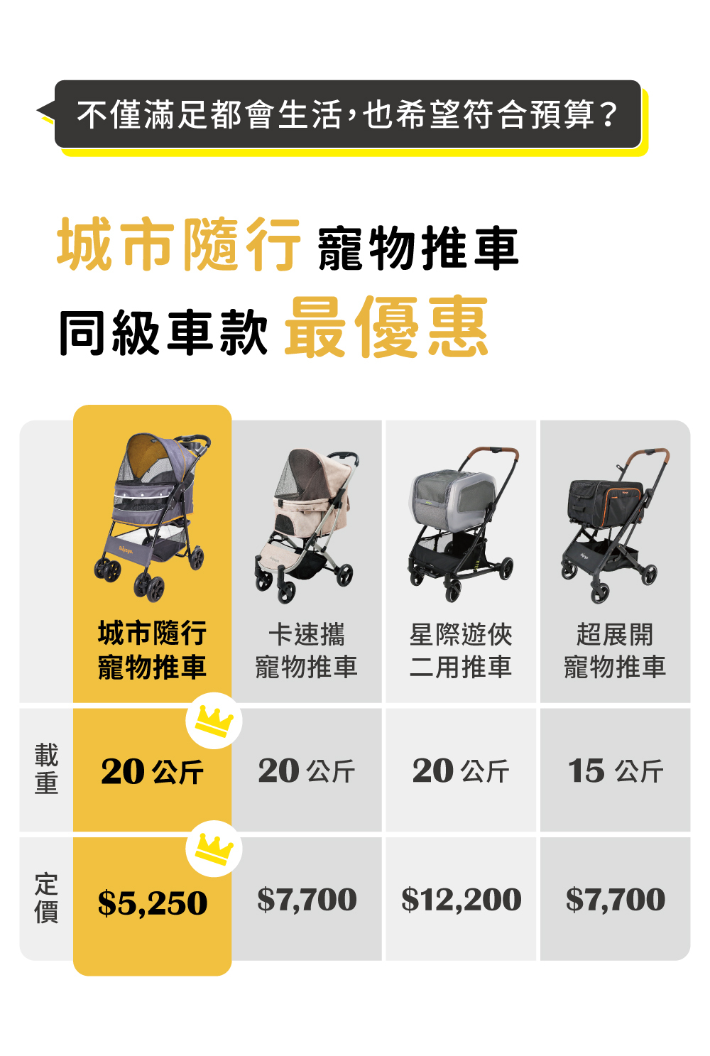 和其他戶外車款相比,城市隨行推車更適合居住在都會的毛家庭使用!