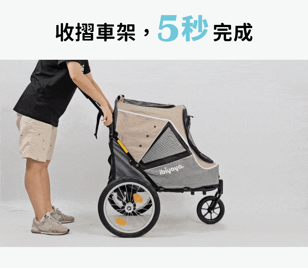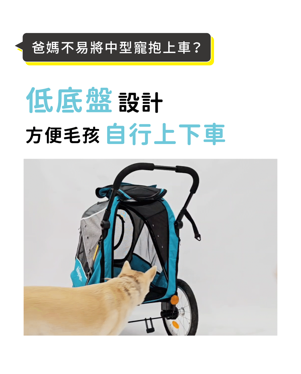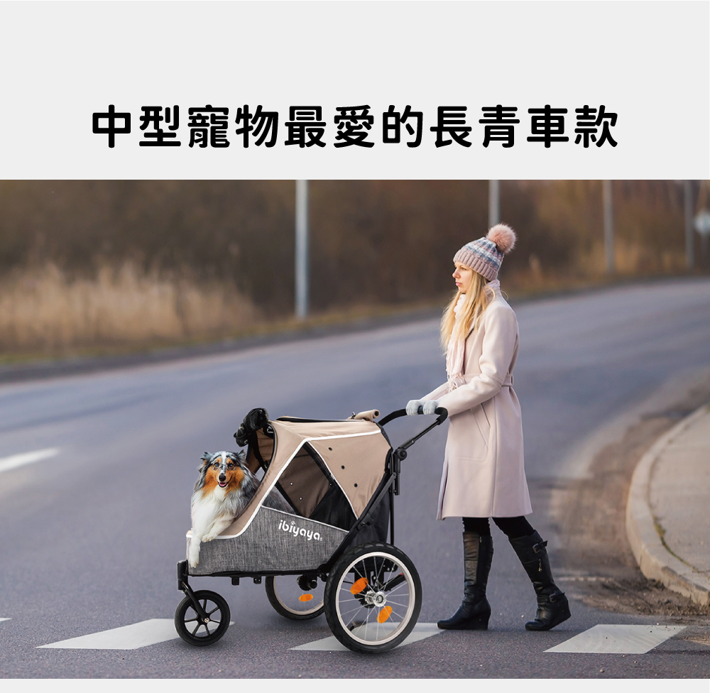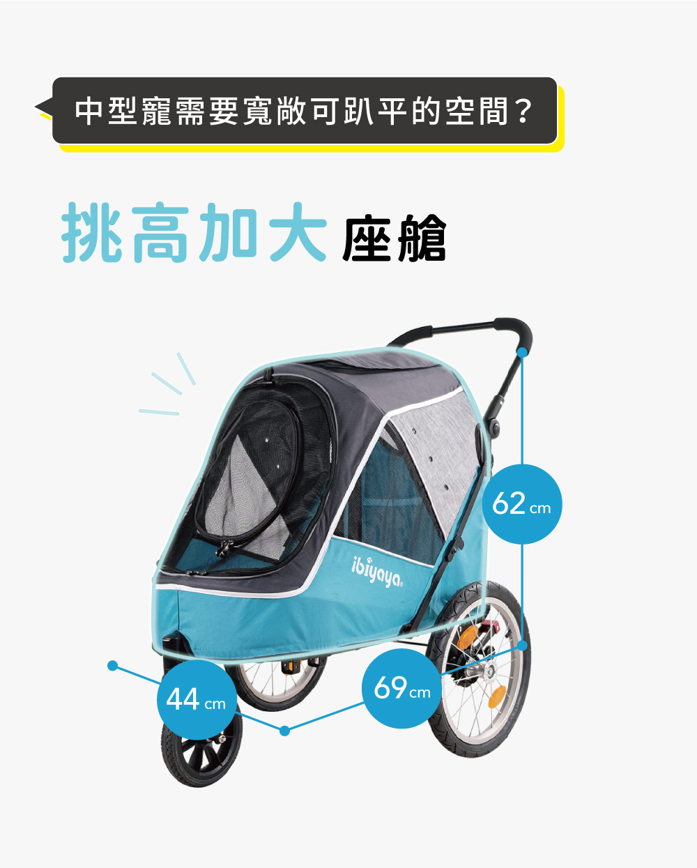 後輪充氣胎加大設計,兼具彈性及避震效果,顛簸路面都能輕鬆行駛,是帶毛小孩到戶外運動的推薦首選!