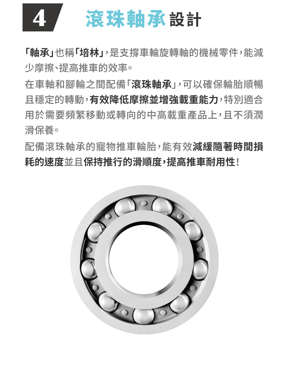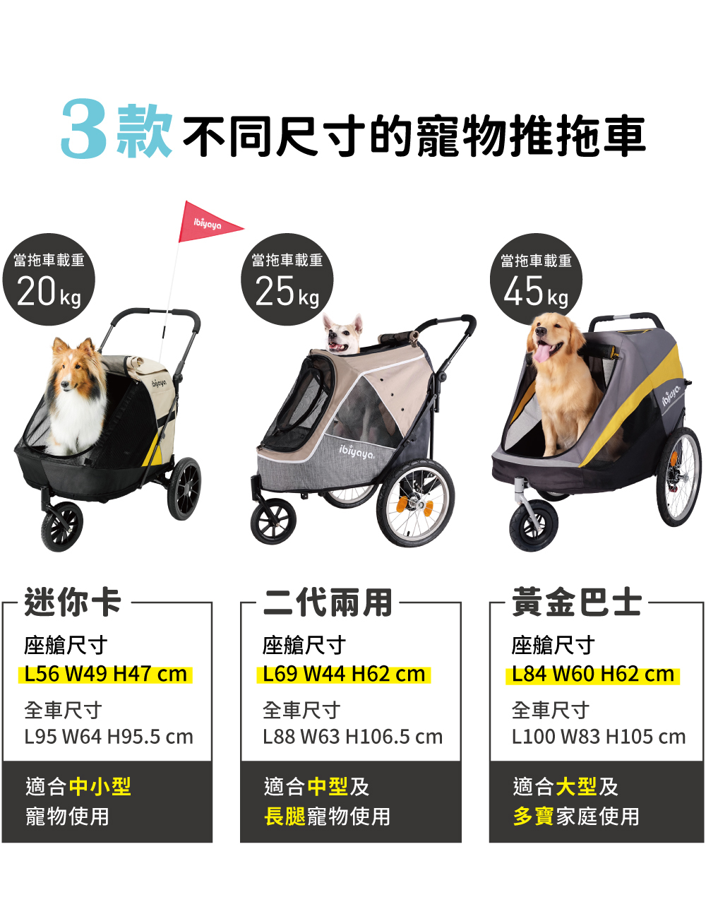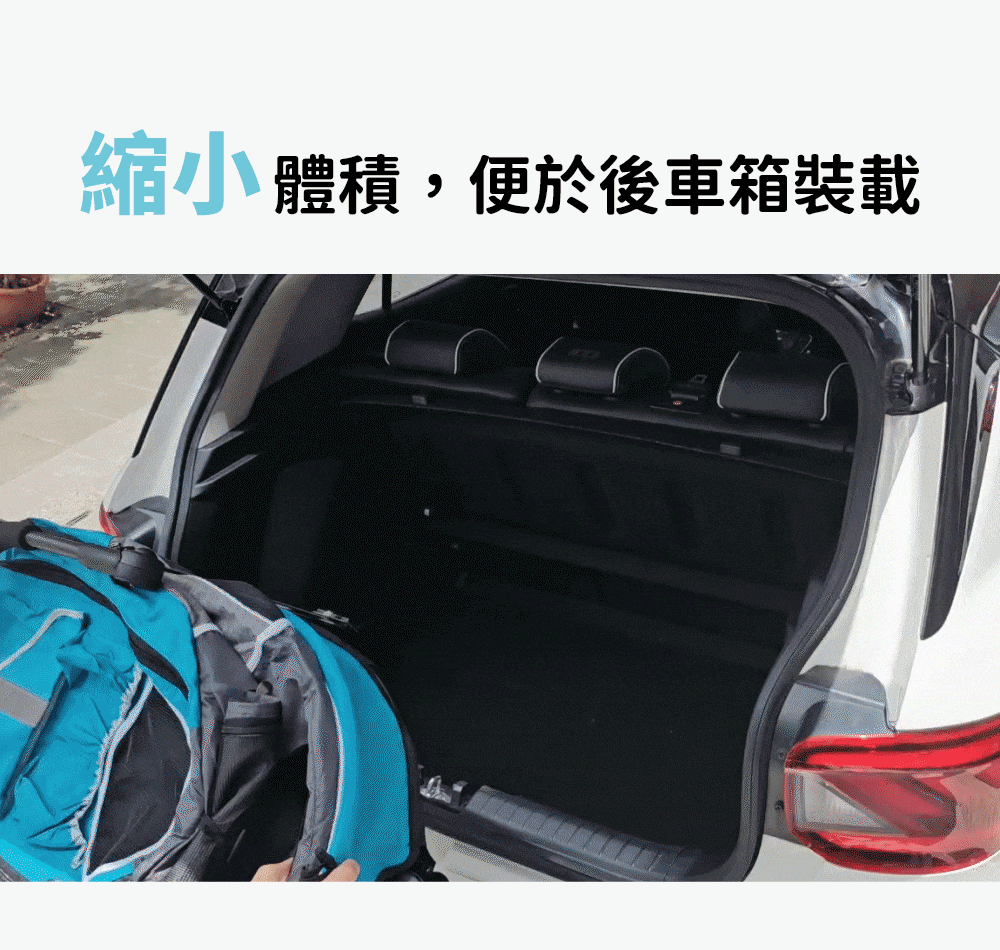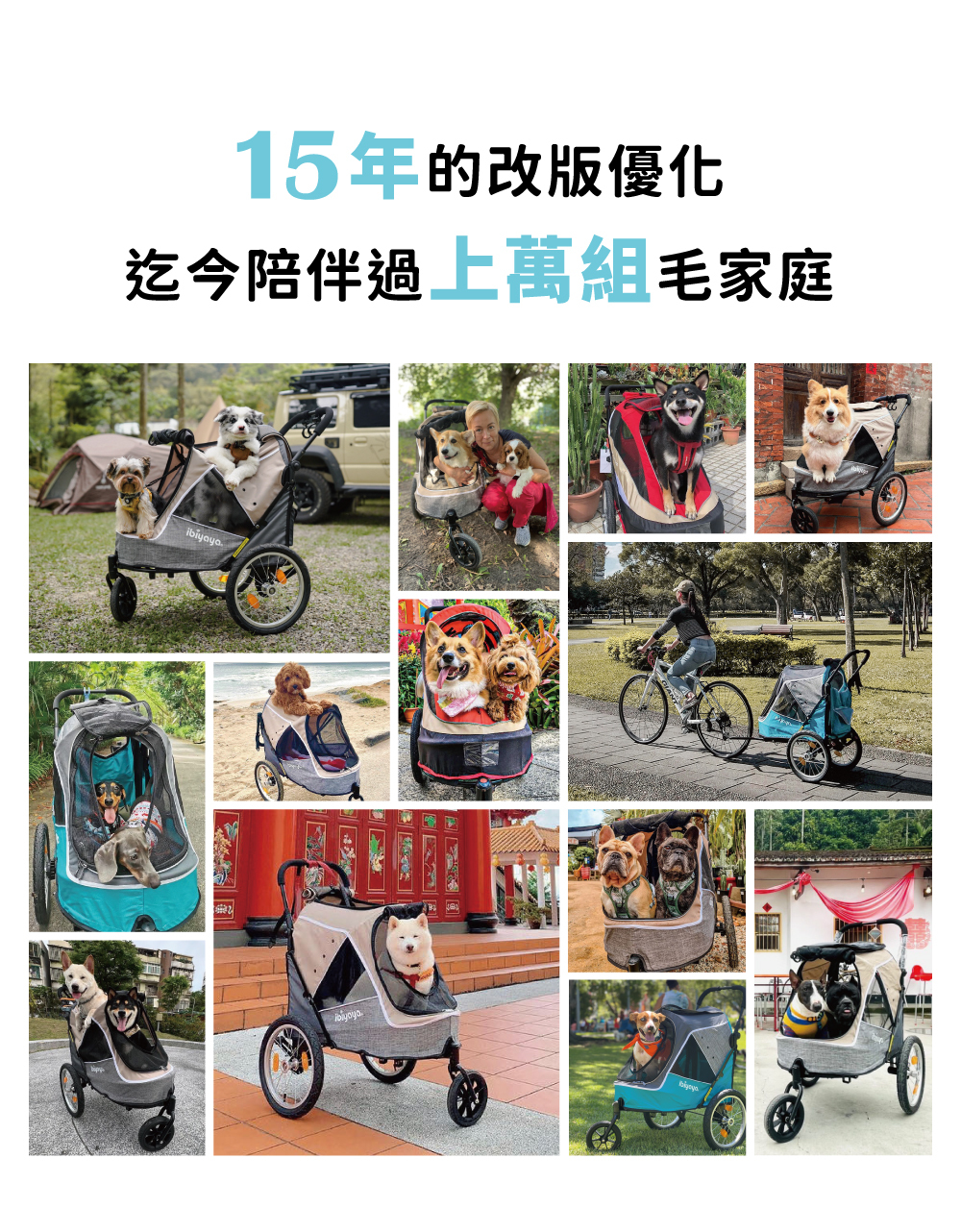 後輪充氣胎加大設計,兼具彈性及避震效果,顛簸路面都能輕鬆行駛,是帶毛小孩到戶外運動的推薦首選!