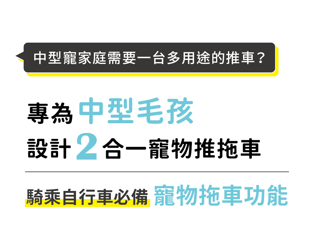 為了讓毛家庭享受騎乘樂趣,這款推車配備自行車連接桿,飼主可自行連接腳踏車出遊。