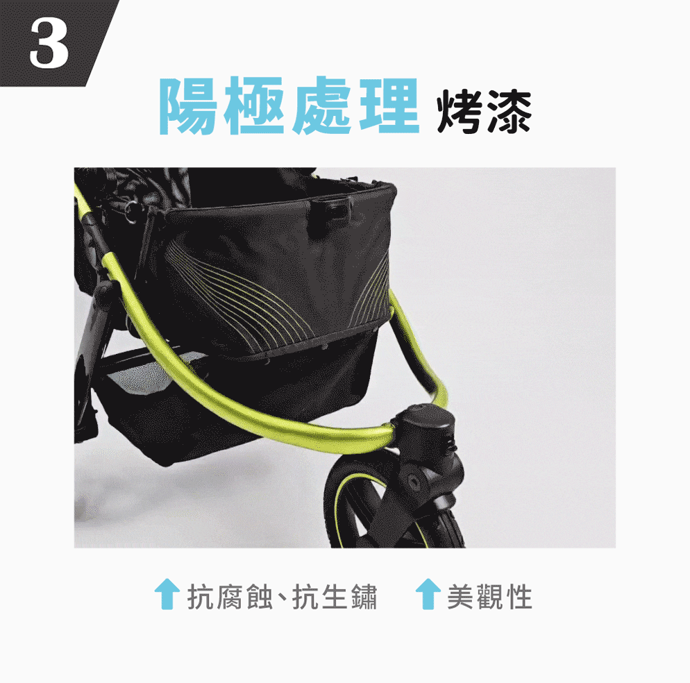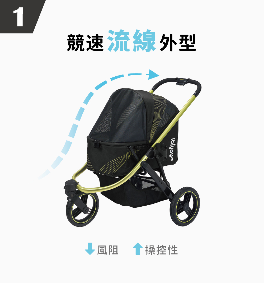 推車流線外型有效提升操控性並降低風阻,採用耐刮輕量的鋁合金作為車架,