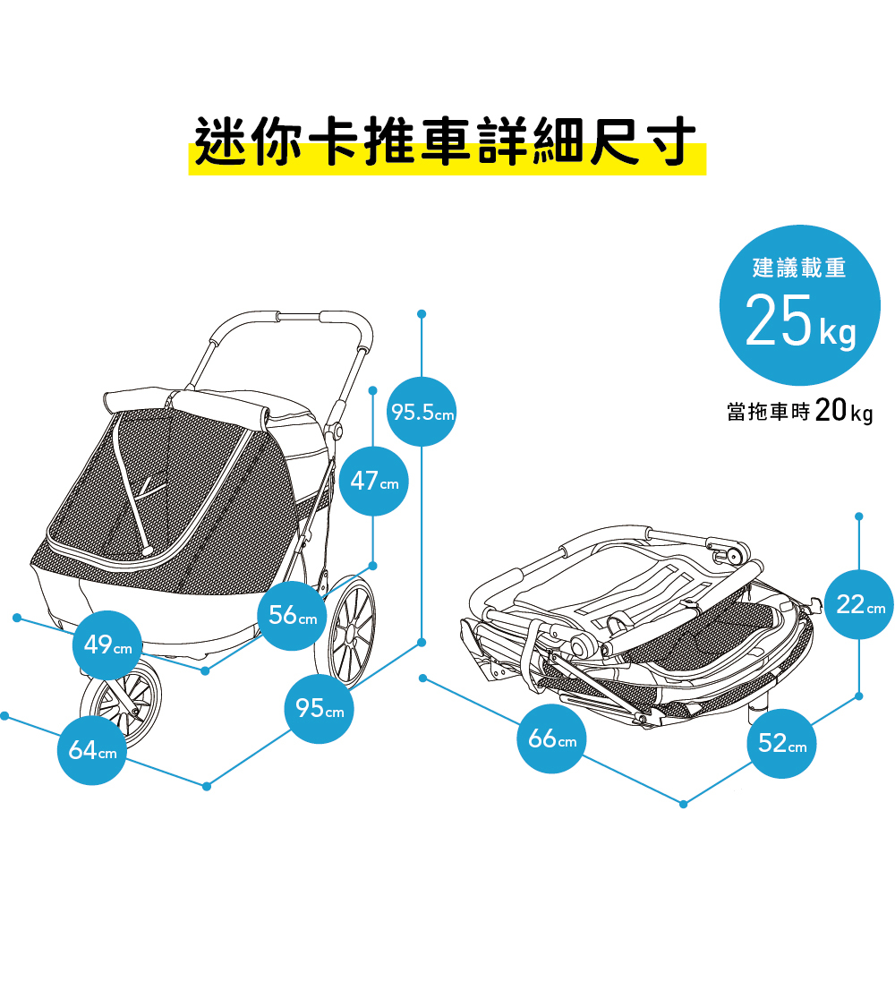 露營野餐.戶外休閒.自行車騎乘.Outdoor派必備-迷你卡三合一寵物拖推車