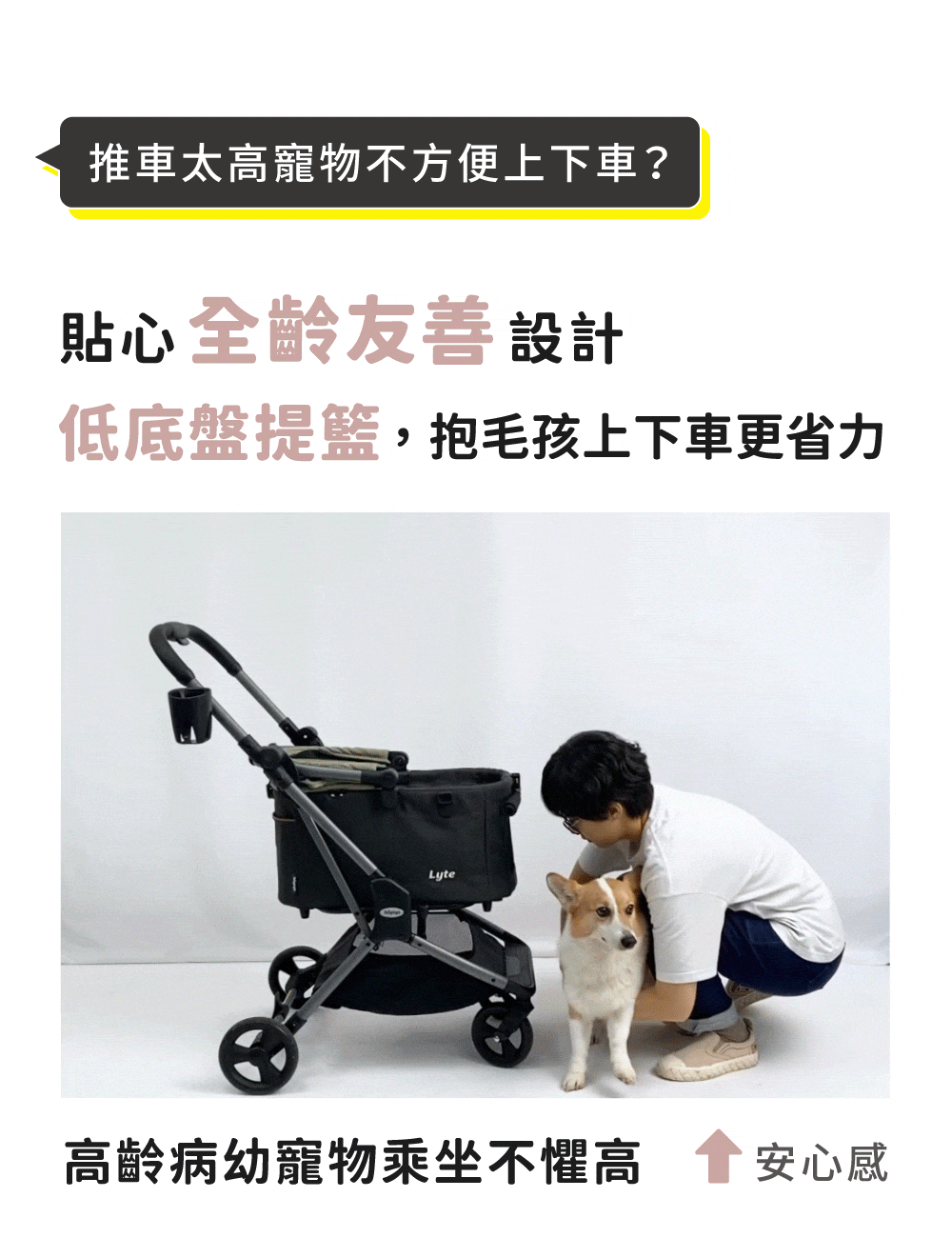 ✔ 低底盤提籃:抱老狗病貓上車省力,不懼高更安心。