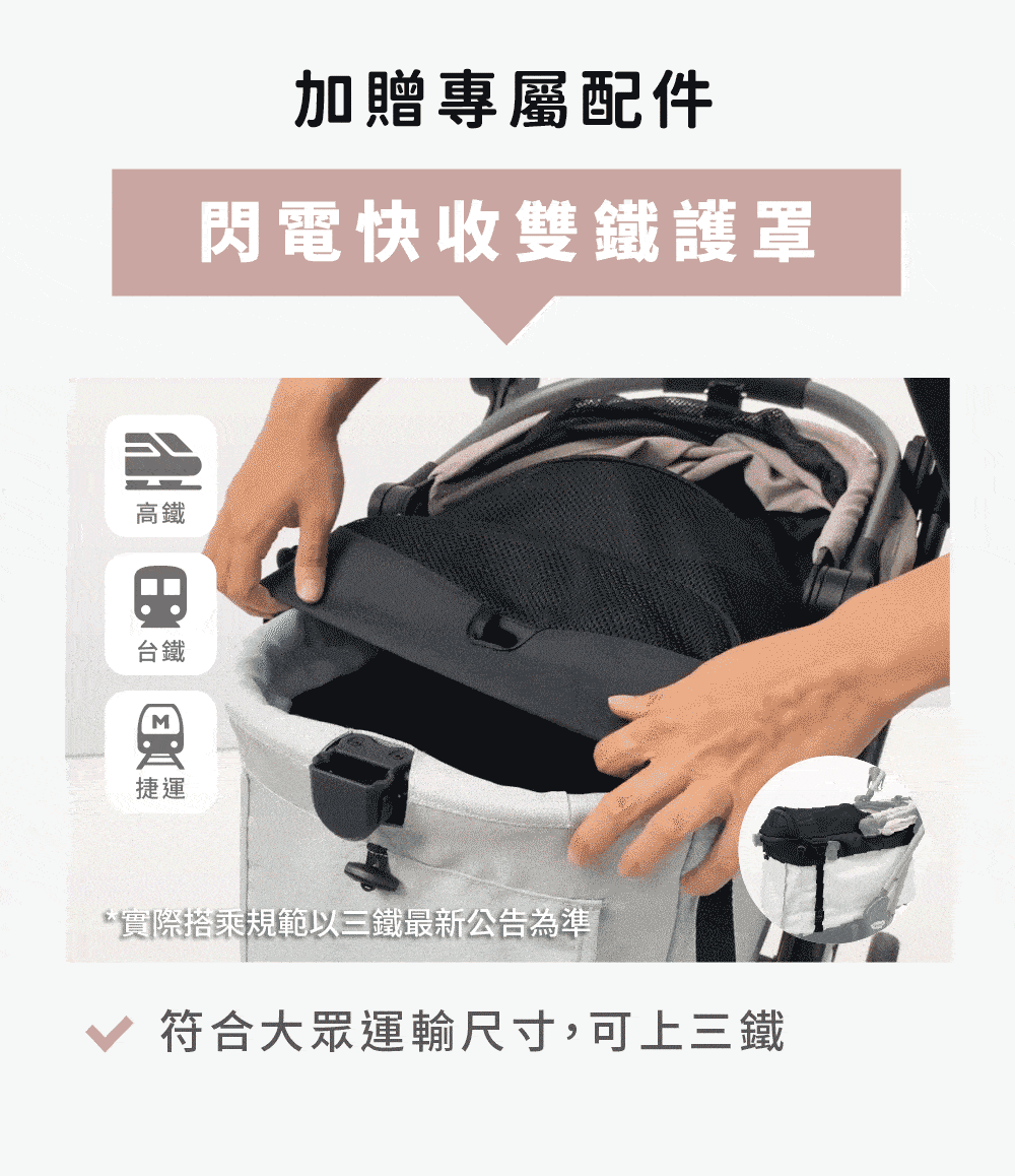 ✔ 車架輕巧三折,配備『雙鐵護罩』搭乘三鐵OK。